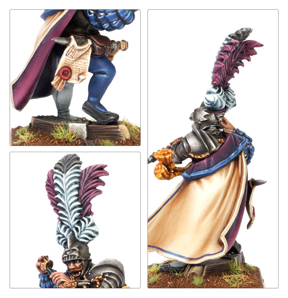 Questo kit multicomponente di plastica ti consente di assemblare un Captain of the Empire da utilizzare nelle armate dell'Empire of Man nelle partite a Warhammer: The Old World. Conduci le tue forze dal fronte e ispira i guerrieri con questo comandante esperto. Il kit viene fornito con due opzioni: un elmo dal fine piumaggio o un cappello.
