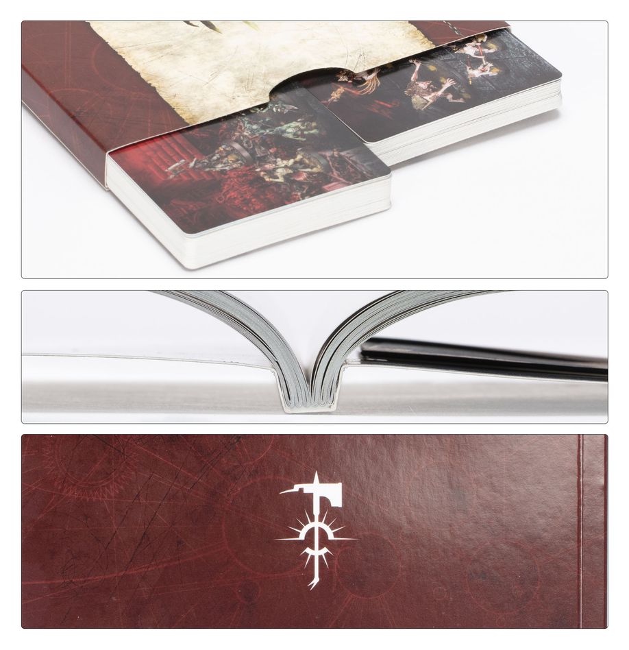 Death Battletome: Flesh-eater Courts is a macabre tome for collectors and gamers who wish to lead a crusade to liberate the Mortal Realms. This softcover book is packed with twisted artwork, chilling background material about the debased cannibals, epic photography, and the rules you'll need to do your liege lord proud. You’ll find warscrolls, Regiments and Armies of Renown, Path to Glory and Anvil of Apotheosis rules, plus a self-contained Spearhead section to help you play tight, tactical games with your collection. This book will guide you through your deluded campaigns, no matter how you like to collect, paint, and play with your Flesh-eater Courts.