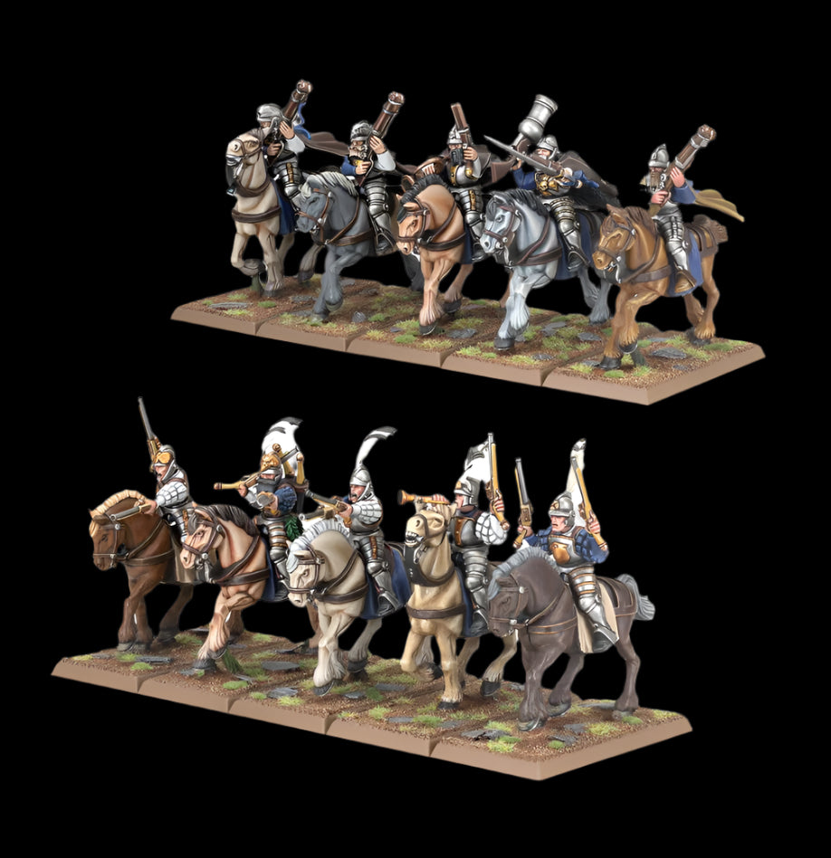 These fast-moving cavalry units are ideal for harassing and disrupting enemy flanks with their black-powder weapons. There's a selection of arms, heads, and accessories that you can use across the miniautres to personalise your unit, and there are parts to add a champion and muscian.
