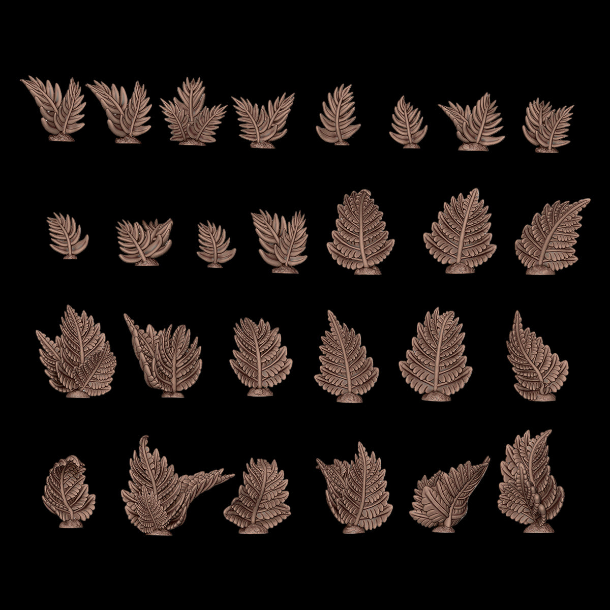 This 3D-printed resin fern set is perfect for adding a natural and fresh touch to the bases of your miniatures, dioramas, or scenery. Essential for forest and humid environments, providing texture and a vibrant look that enhances any scene.