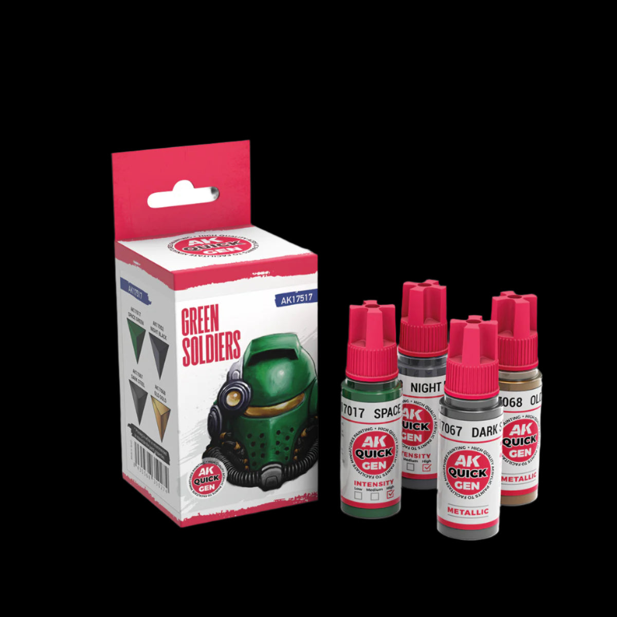The selected tones in this QUICK GEN set are perfect for painting armies and miniatures with dominant green colors.