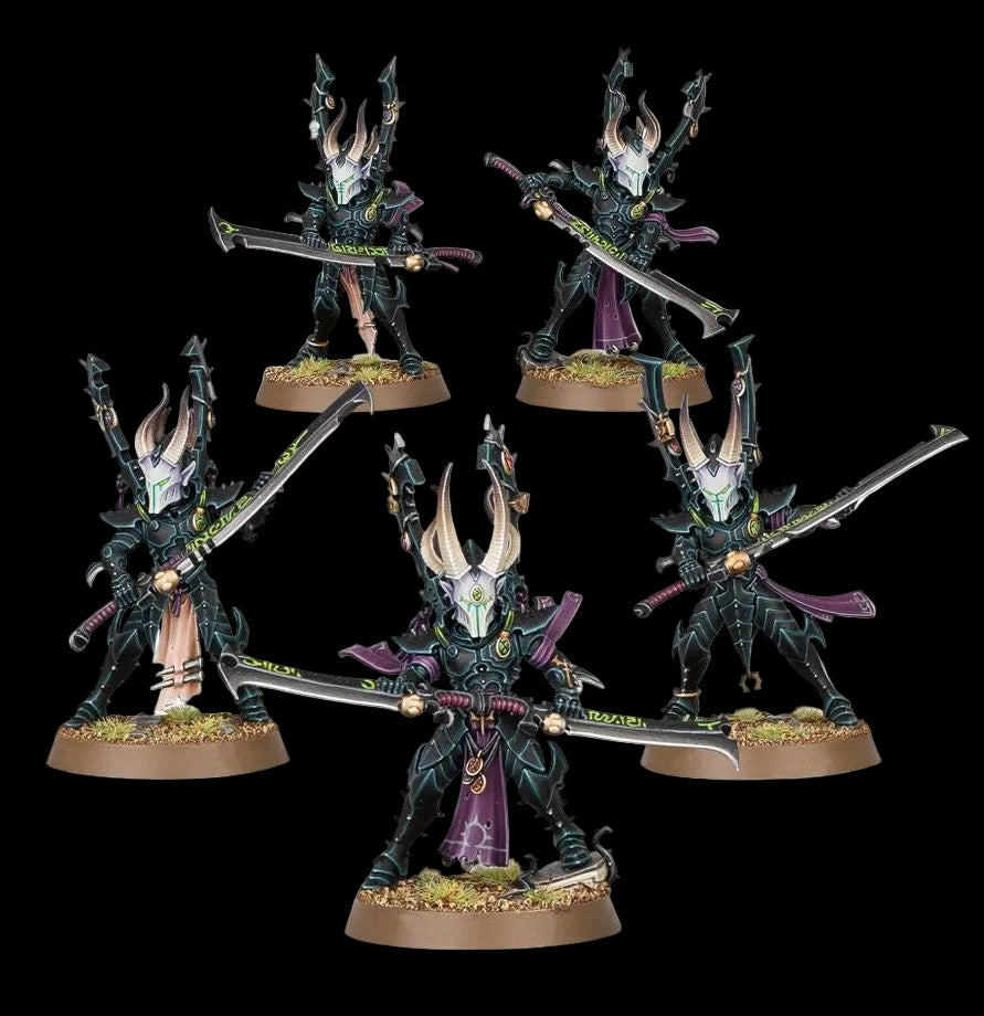 One member of the squad can be assembled as an optional Klaivex, who can be armed with a klaive or demiklaives, and has the option of a helmet or a barehead. The kit also comes with an Incubi shrine token.