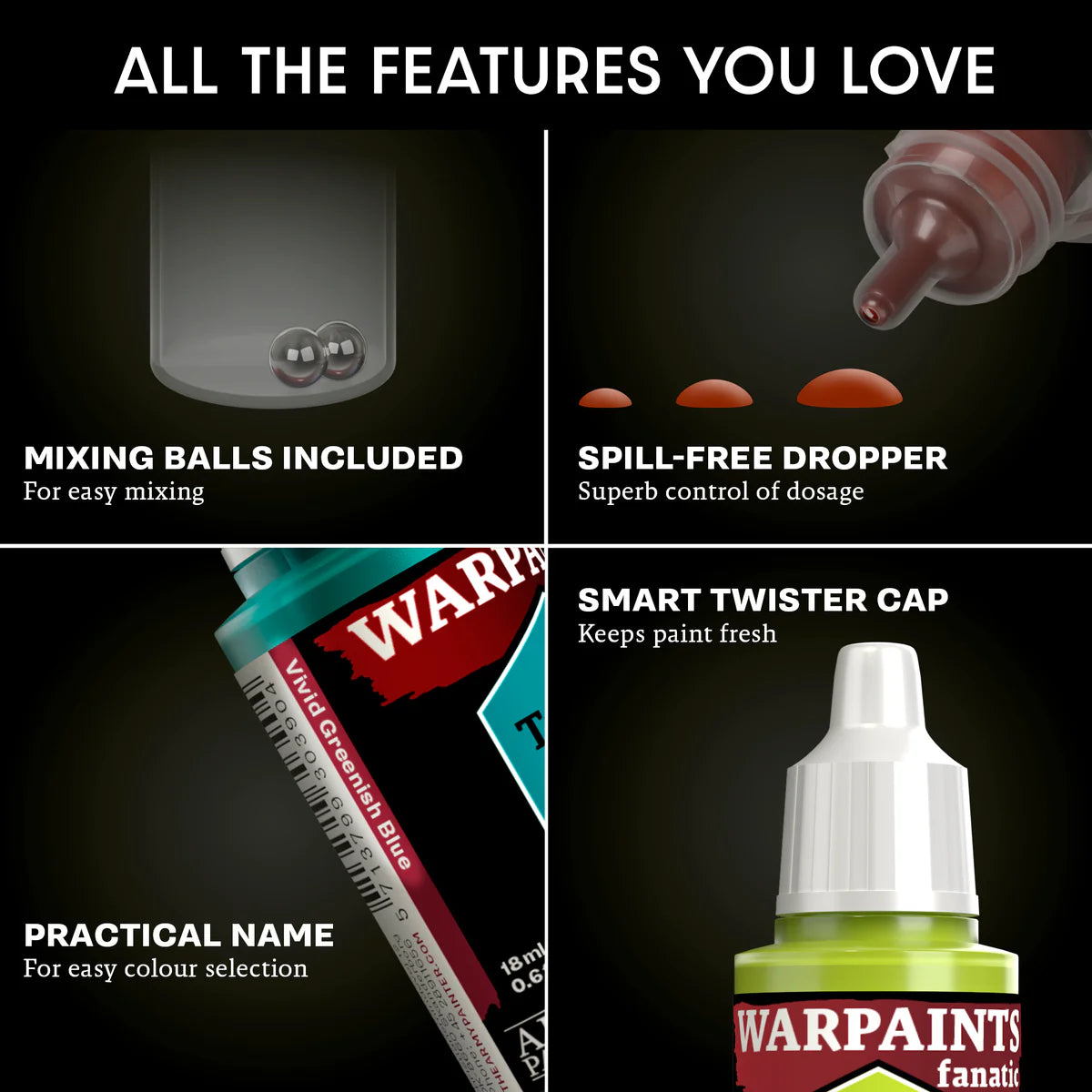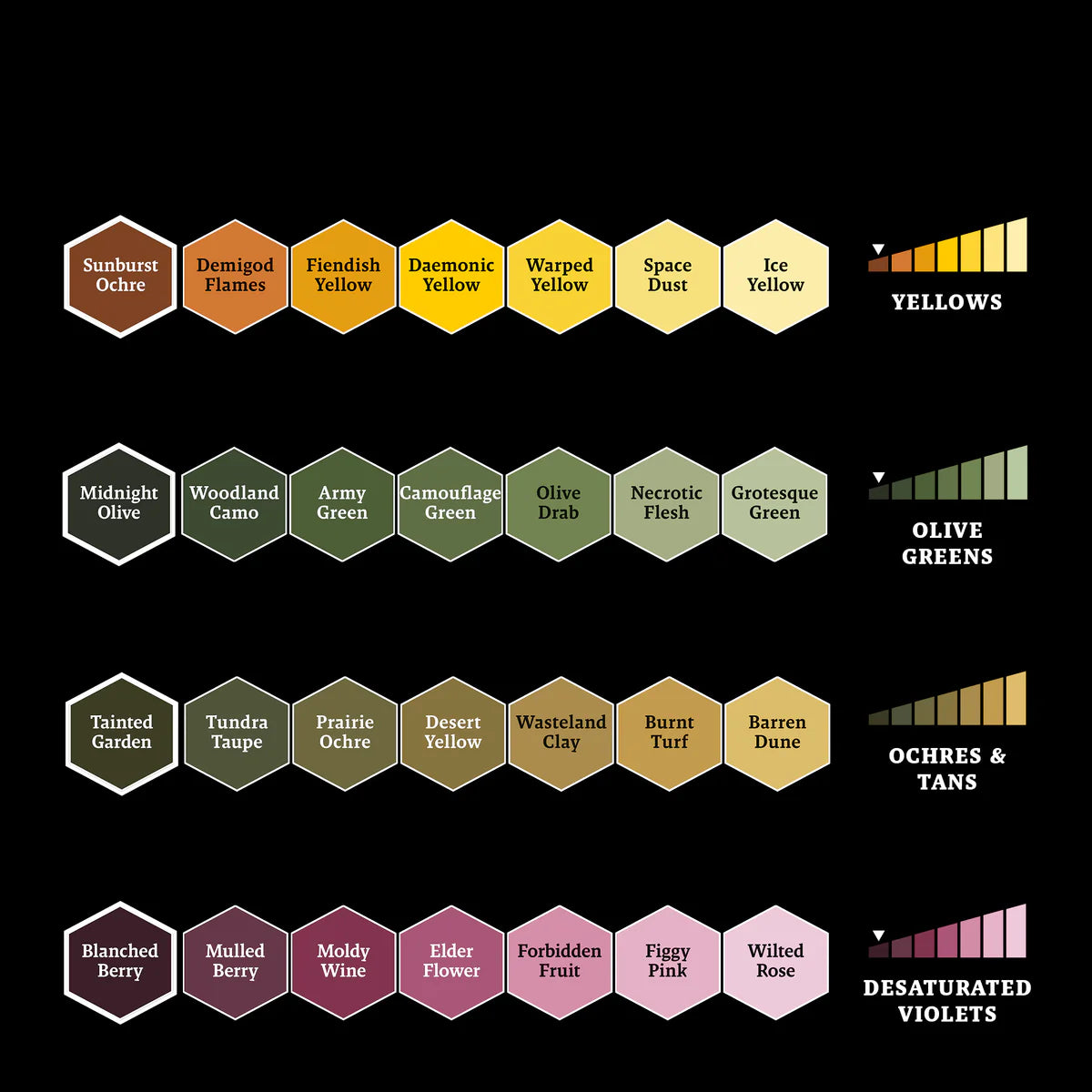 - 10 paints: 6 acrylic colours, 2 Zorn Palette inspired, 1 Wash, 1 Metallic, 1 Effect, and 1 unique Speedpaint