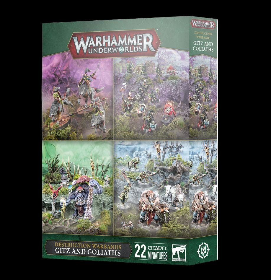 This kit collects four Destruction-themed warbands for Warhammer Underworlds. All the miniatures are push-fit, moulded in coloured plastic, and include scenic bases on the frames so you can start playing quickly. You'll also find warscroll cards and fighter cards for each warband. Hrothgorn's Mantrappers are a versatile Flex warband, Rippa's Snarlfangs are an aggressive Strike warband, Zarbag's Gitz are an ambitious Take and Hold warband, and Mollog's Mob feature the Mastery playstyle, which rewards players for careful management.