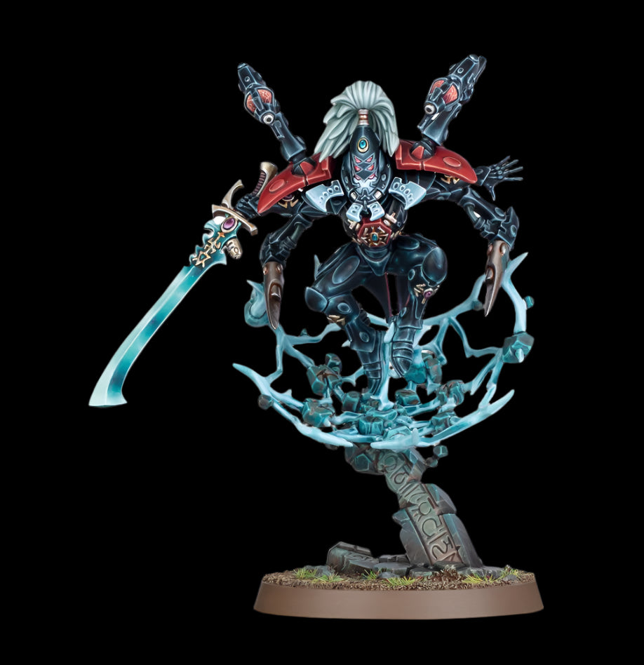 This multipart plastic kit builds Lhykhis – the legendary Phoenix Lord of the Warp Spiders Aspect Warriors – for use in your Aeldari armies in games of Warhammer 40,000. She epitomises everything her Aspect shrine stands for – rapid attacks from unexpected quarters, and utterly devastating strikes. Lhykhis also inspires her fellow warriors, making them more highly effective harassment units.