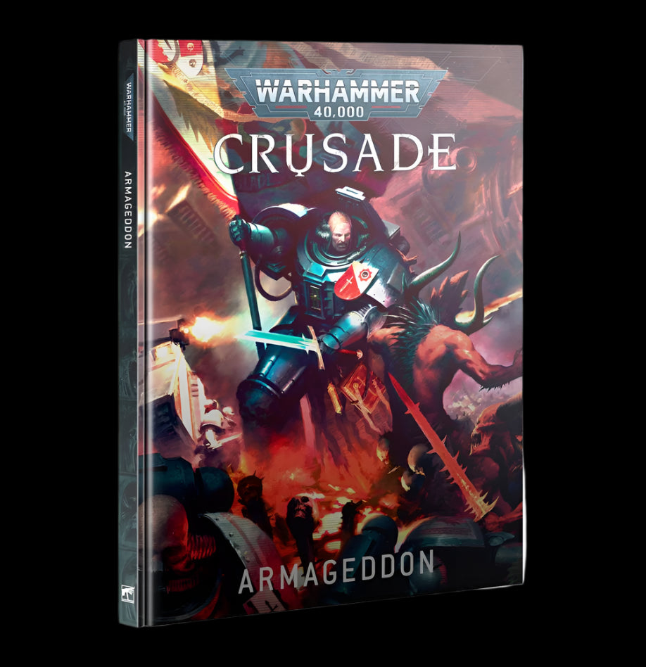 Crusade: Armageddon is a narrative expansion for Warhammer 40,000. It details the brutal next chapter in the ongoing saga of the conflict raging around Armageddon, and the bleak state of the war efforts. The book also includes the rules to play narrative games, build and upgrade a Crusade army between battles, and run your own campaigns.