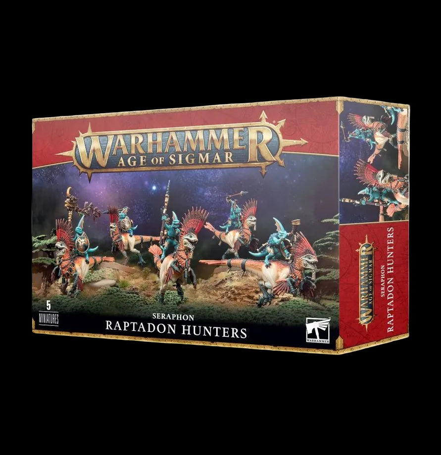 This multipart plastic kit builds five Raptadon Hunters – swift and predatory Seraphon light cavalry. Every Hunter carries a star-buckler and wields a javelin-throwing starstone atlatl – the skinks and their raptadon steeds each have distinctive, dynamic poses, and the kit also includes five moonstone clubs that can hang from belts or saddles. One model can be built as an Alpha champion with a unique javelin-arm, shield, and atlatl, one as a Hornblower musician, and one as an Icon Bearer carrying a feather-tasseled idol with a choice of two heads.